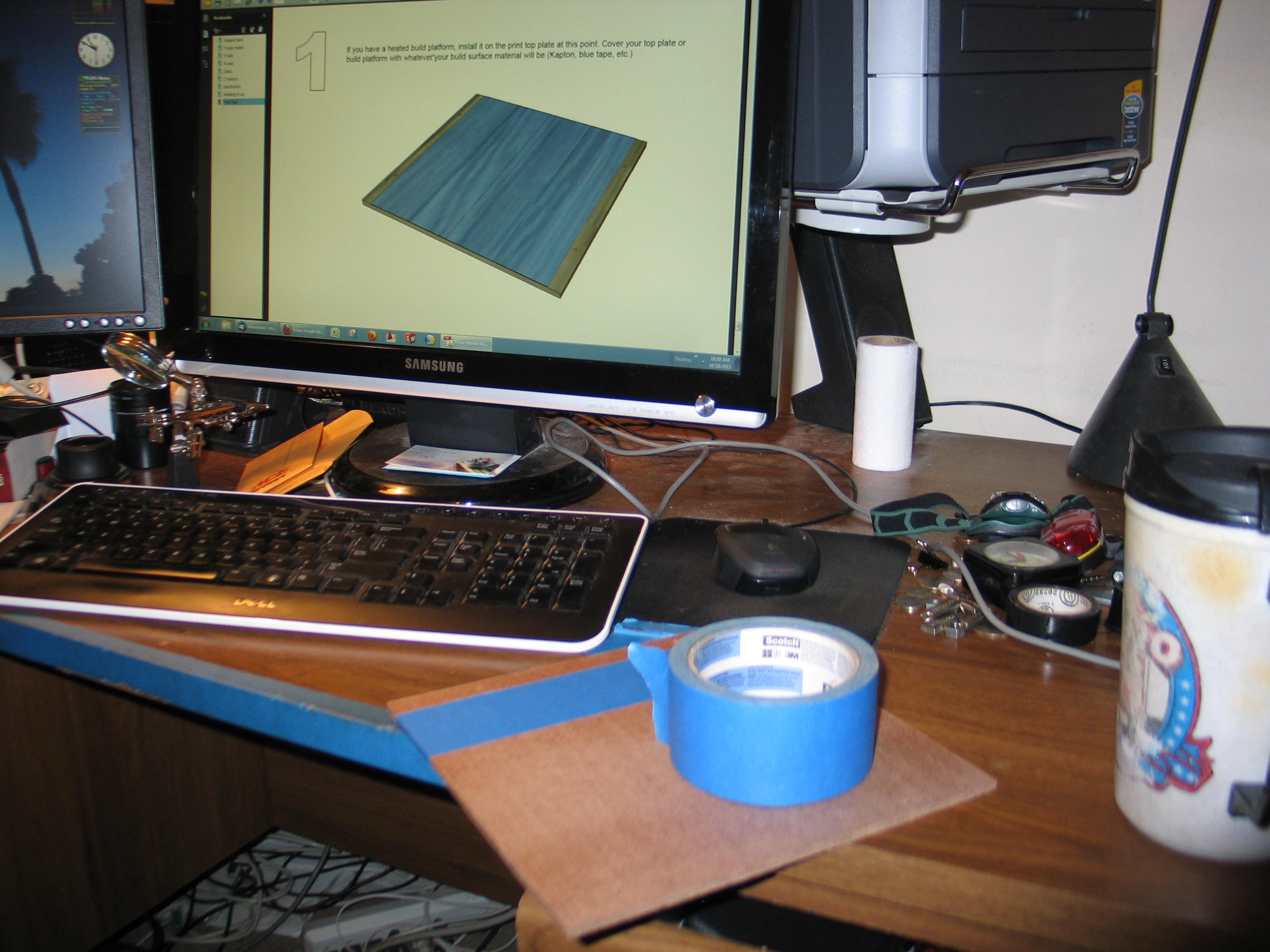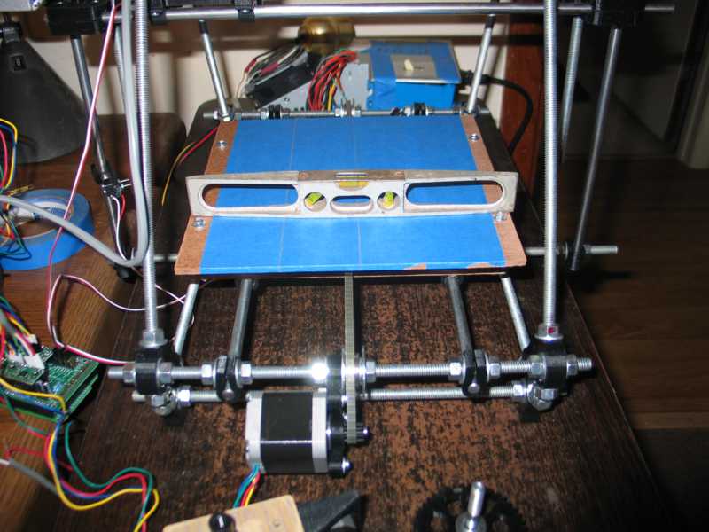 Next up, adding the build platform. I don't have a heated bed, as yet, so I opted for the blue tape. This worked out for me because I use it on my CNC router for holding down foam to be milled. In case your wondering, I mill foam for lost foam foundry patterns. ![]() I put the level on the table