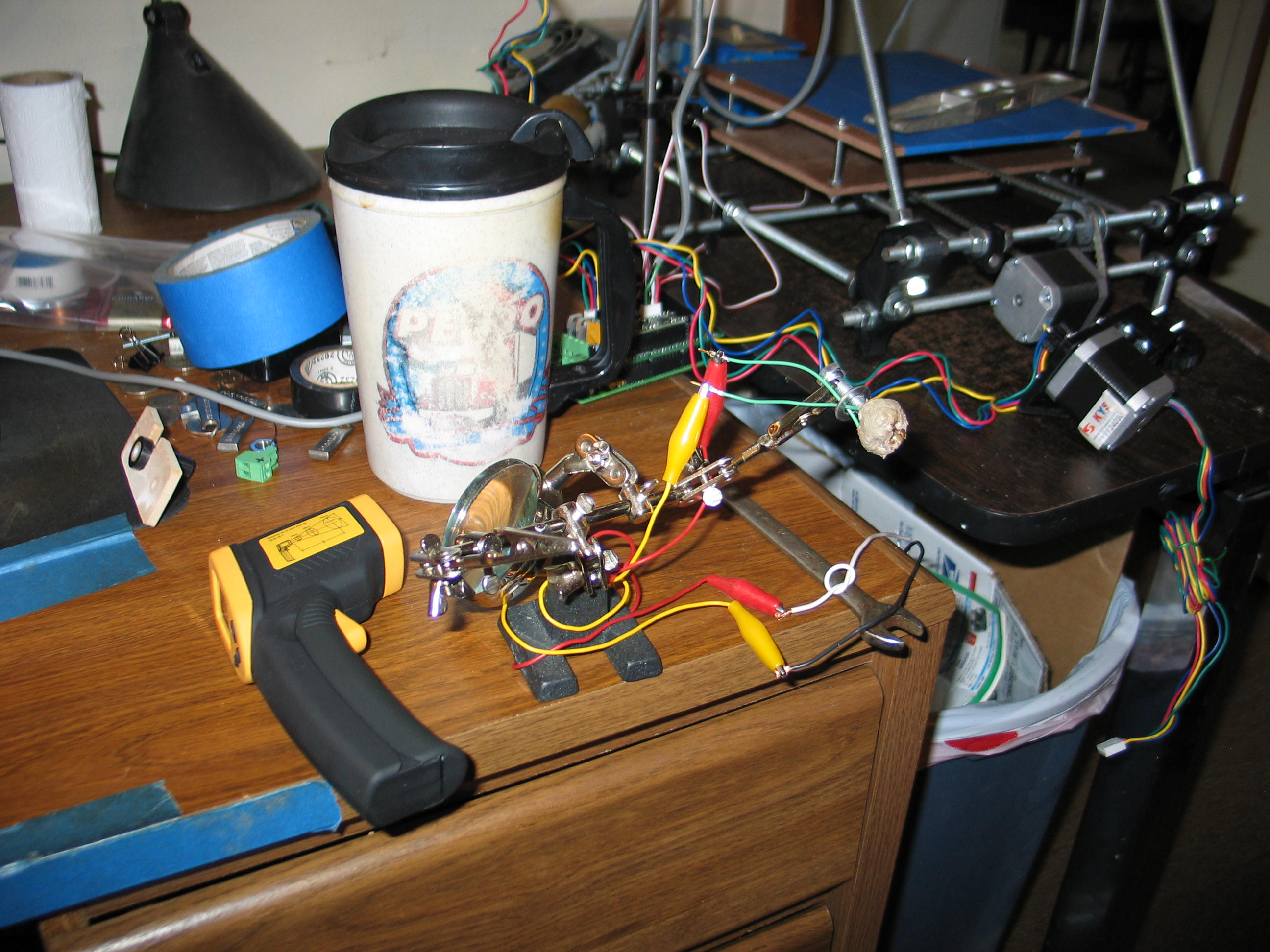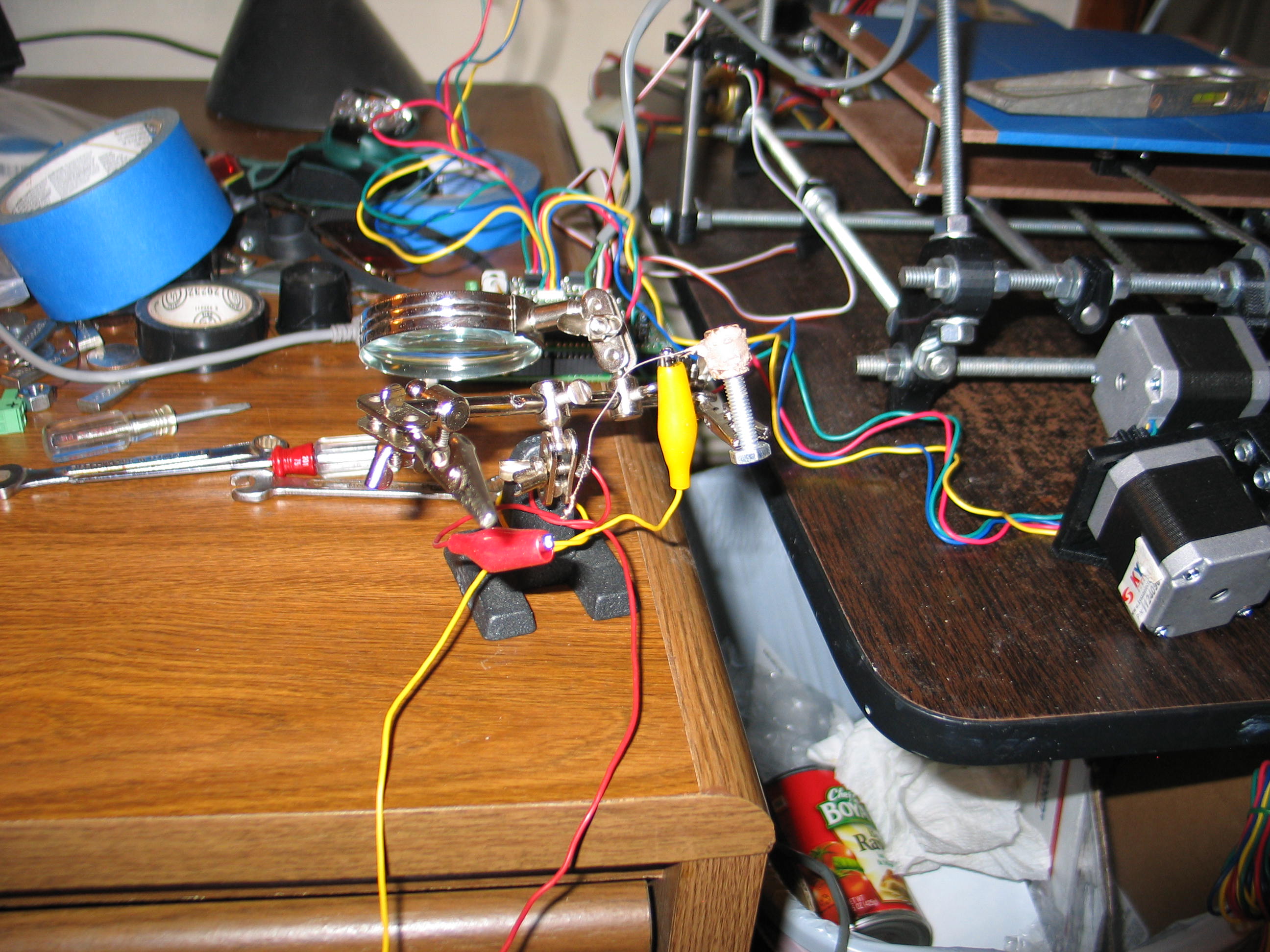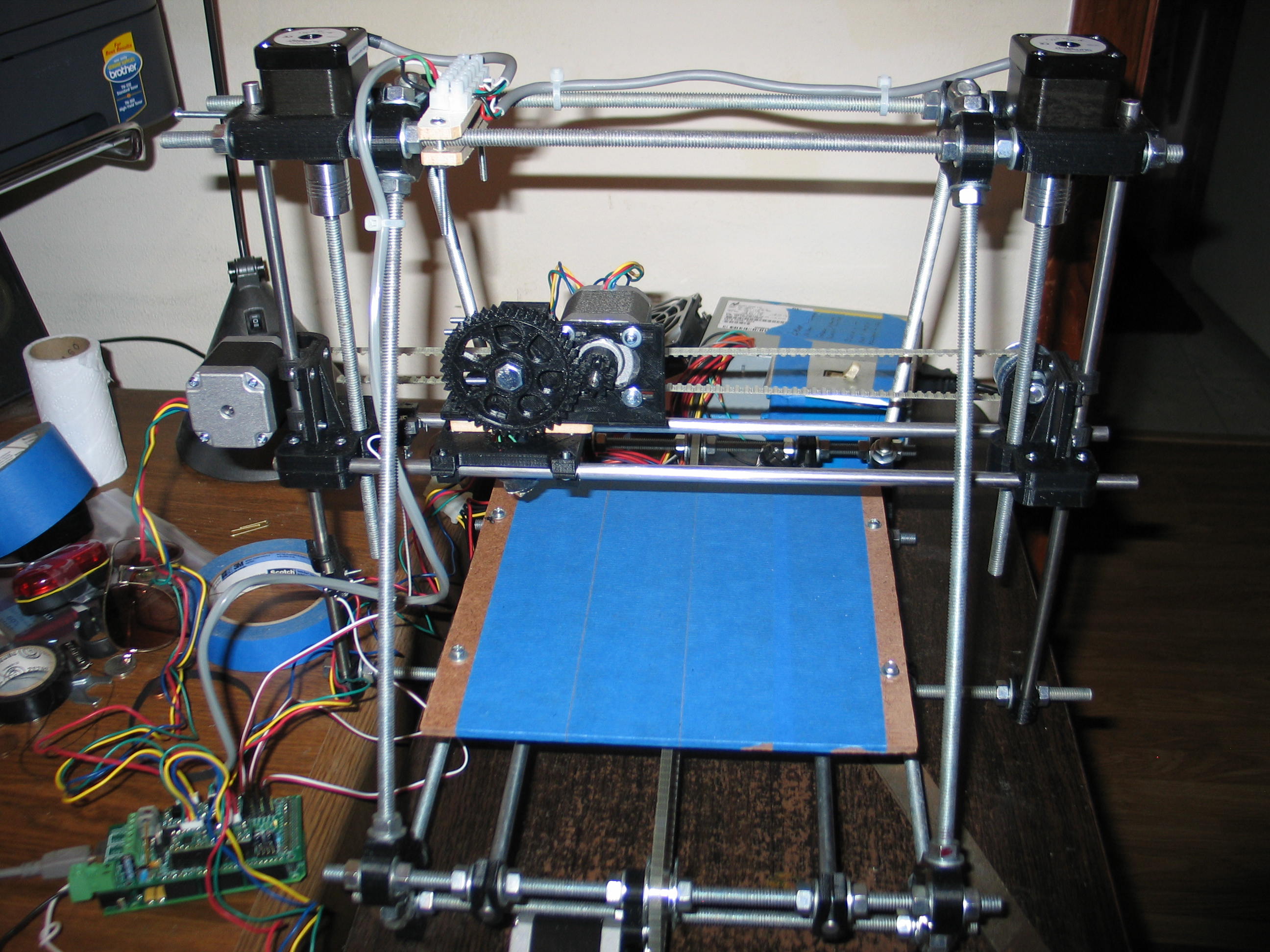 is creeping in. ![]() I had to substitute longer mounting bolts to make up for the spacer. I don't want to quit but I'm out of time for today. I feel like I made some good progress. I still need to wire the hot end to the electronics, and button up the wiring. Nobody seems to show you how to keep the wires out of the mechanisms, so I'll have to address that. I hope to smell hot plastic tomorrow! Navigate