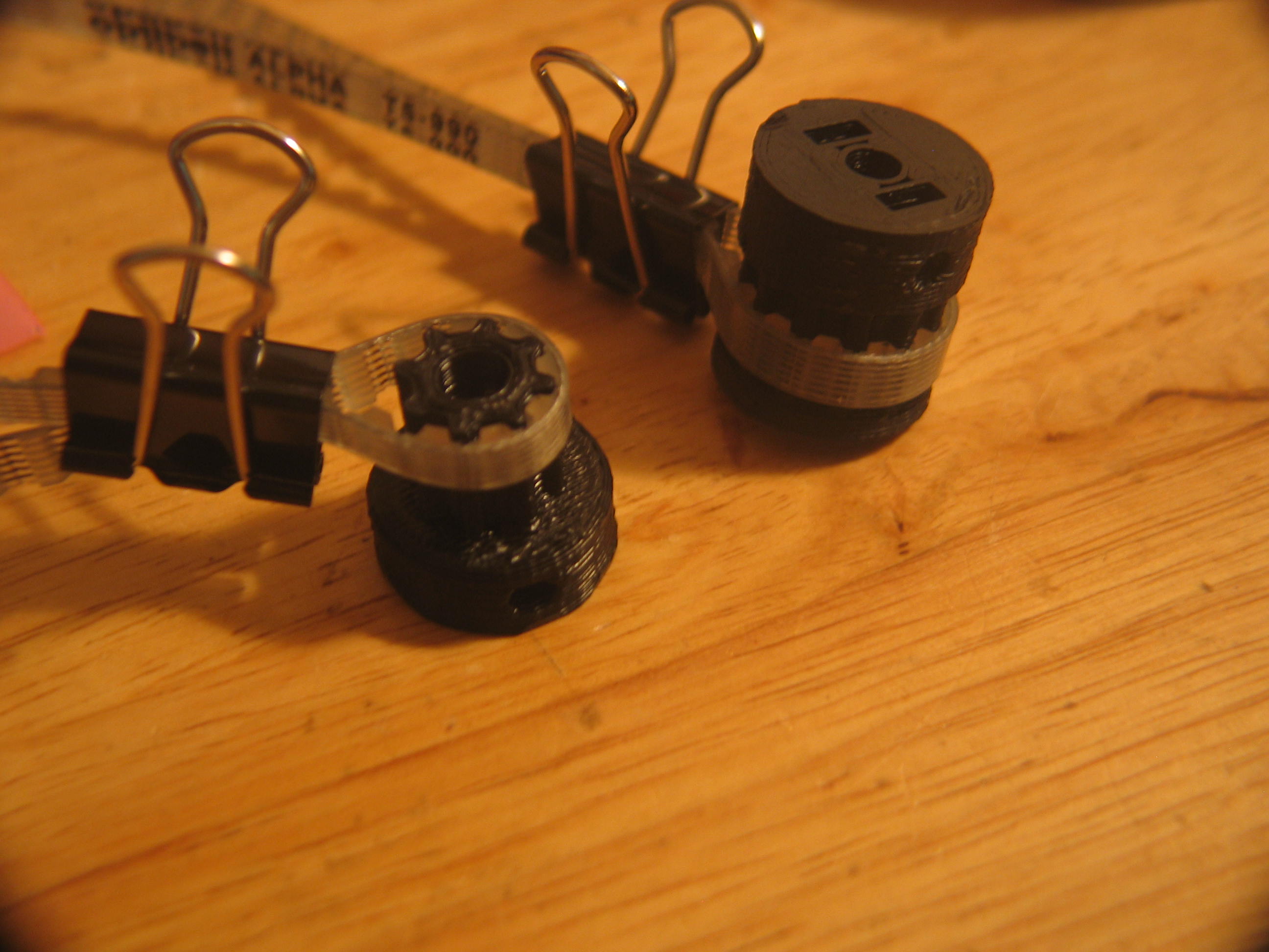 This is the continuation from page 1 where I had a problem with build quality from Lulzbot. They gave me no shit whatsoever, and promised to get replacement parts to me asap. ![]() Good to their word, I got this the next morning. ![]() And speaking of fine, click the photo above and look at the print quality! Except for the lined surface, these parts almost look injection molded. I am impressed. I counted them against the parts list and not only is everything there, I got a few extras. This is the new replacement of the Wades extruder parts. I rolled the gears together and they're pretty smooth. If this is the quality of their products, I have no trouble recommending you buy from them. ![]() These are the T5 belts