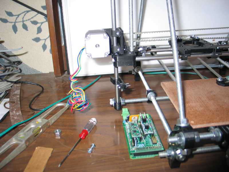 There are lots of Prusa Mendels out there, so it must work. I used two pieces of hardboard to make the mount for the terminal. This is what it looks like at this point. I used a multimeter to check all the wiring as I went. Next time, power supply, plug everything in and hope for no smoke! Navigate